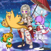 ハロウィンアイテムと和風のアバタは合わないと思ってたけど、ふらん犬のお陰で妖怪を引き連れた何かの使い手みたいで、意外とアリかも。